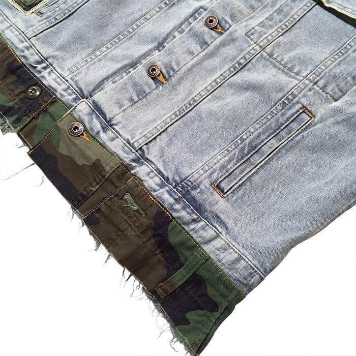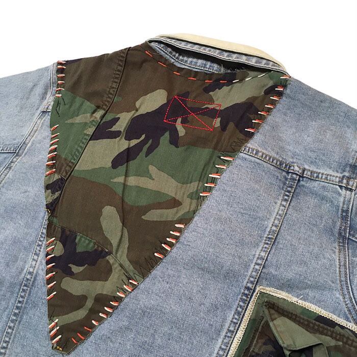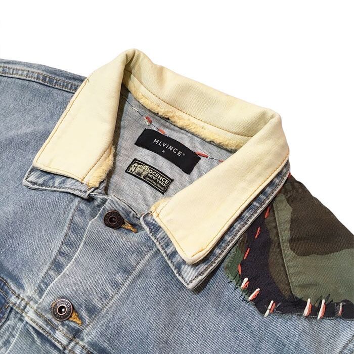 MLVINCEの代名詞であるデニム生地にInnocence NYCのエッセンスであるヴィンテージカモアイテムを合わせ再構築を行った逸品となります。