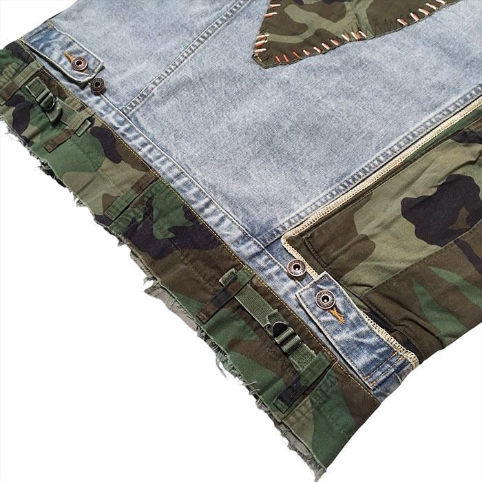 ※ヴィンテージアイテムをリメイクで使用している箇所がある為、カモ柄と寸法に個体差が生じますので予め御理解賜ります様お願い申し上げます。