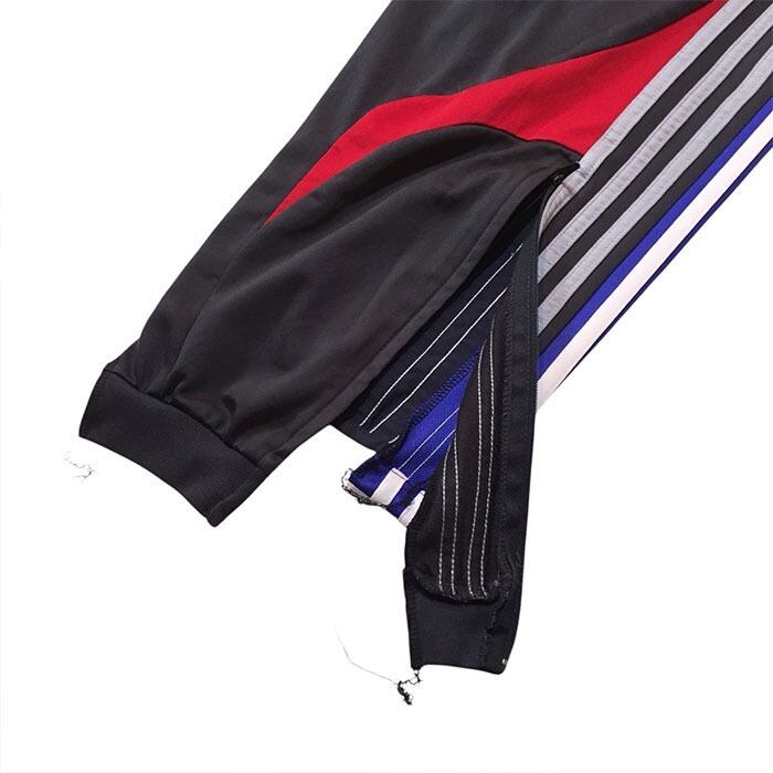 2枚の異なったusedトラックパンツを解体後、再構築したドッキングパンツ。