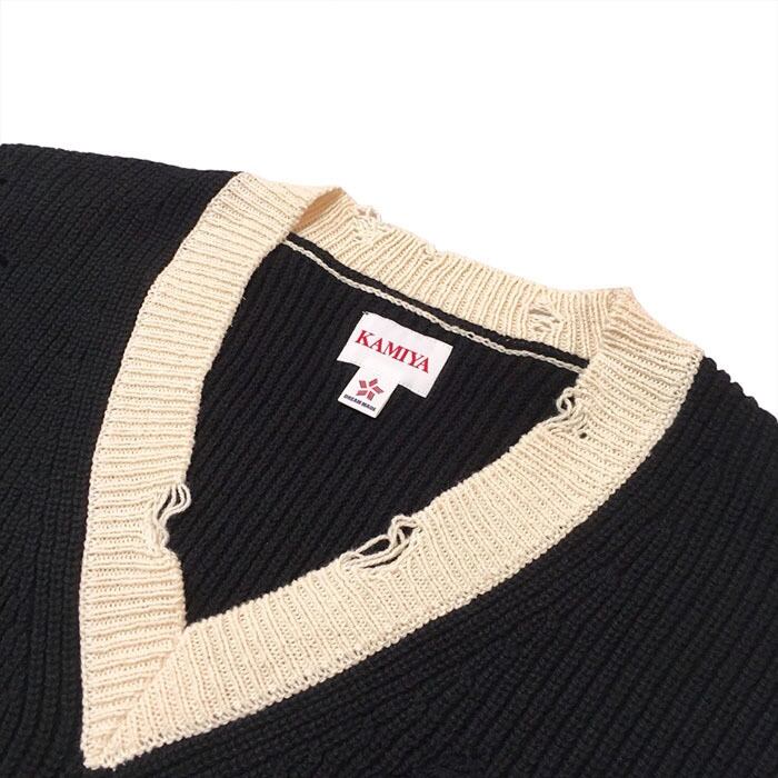 KAMIYA カミヤ / School Vneck Sweater (black) [KAMIYA-G16PO061]