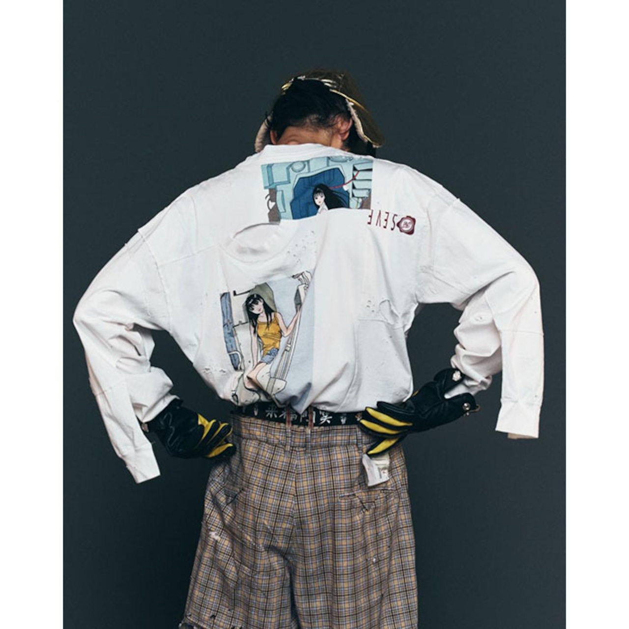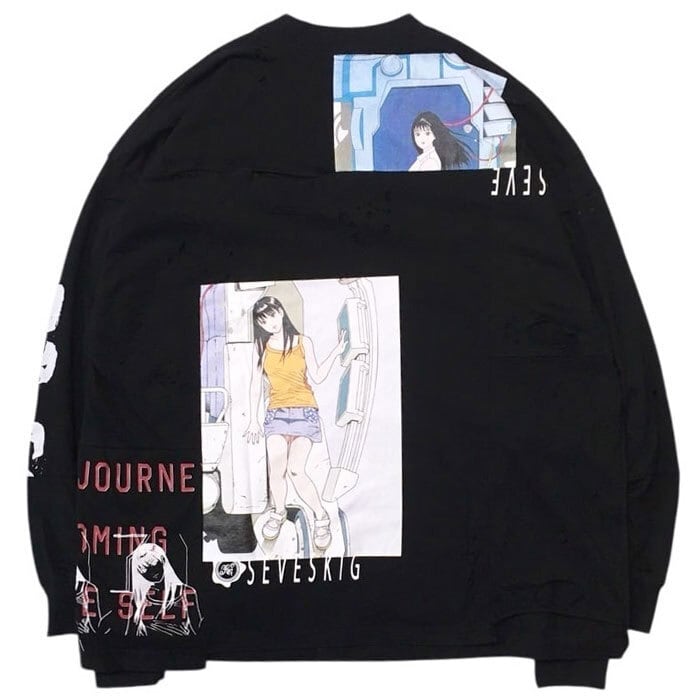 This is a collaboration long sleeve tee between SEVESKIG and Hisashi Eguchi.