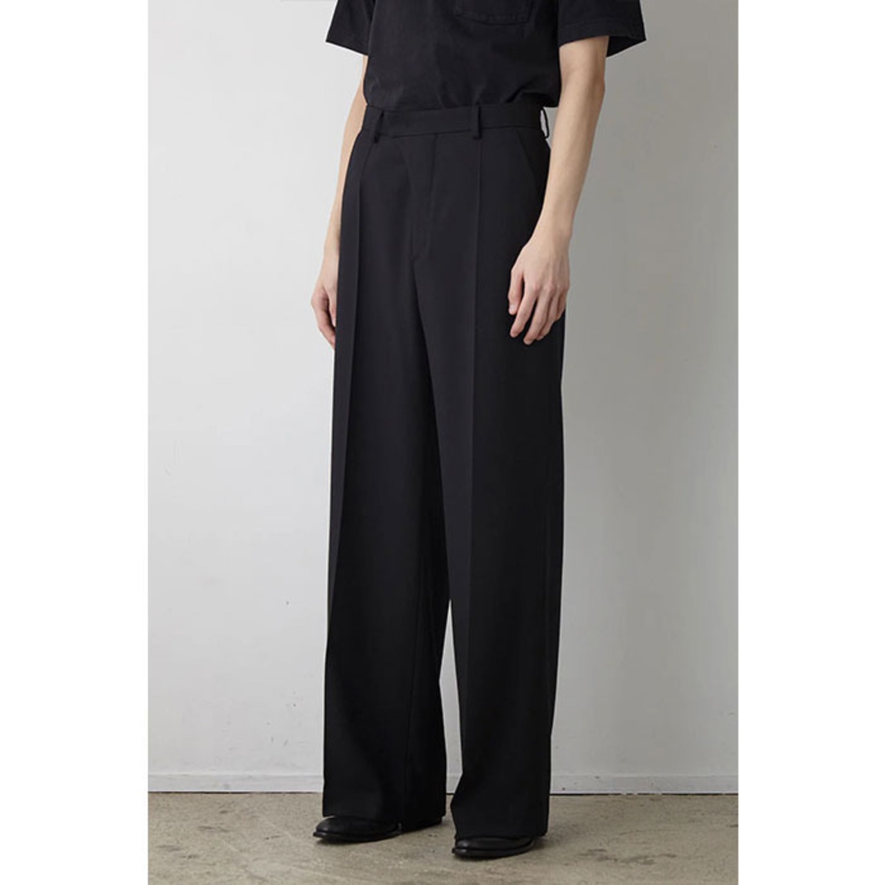 ・ノータックのウエストまわりがフィットし、裾に向けてメリハリのあるボリュームを持たせたバギーモデル。