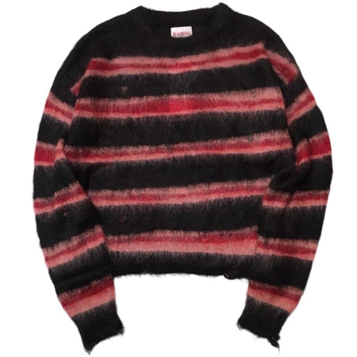 こちらはKAMIYAのディストーテッドボーダーモヘアニットセーターになります。