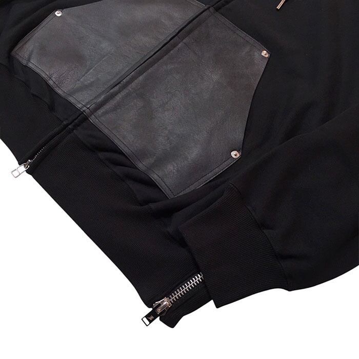 JOHN LAWRENCE SULLIVAN ジョンローレンスサリバン / Leather Pocket Zip Up Sweat Hoodie (black) [JLS-05-06]