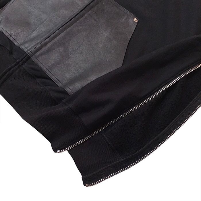 ■商品名 : Leather Pocket Zip Up Sweat Hoodie