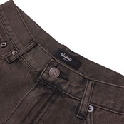 After manually etching color fading such as whiskers and blasts, the entire piece is bleached using bio-stone processing to create an aged appearance.