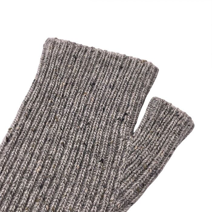 ネップのミックス糸を使用したフィンガーレスの手袋。