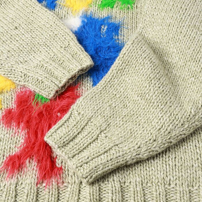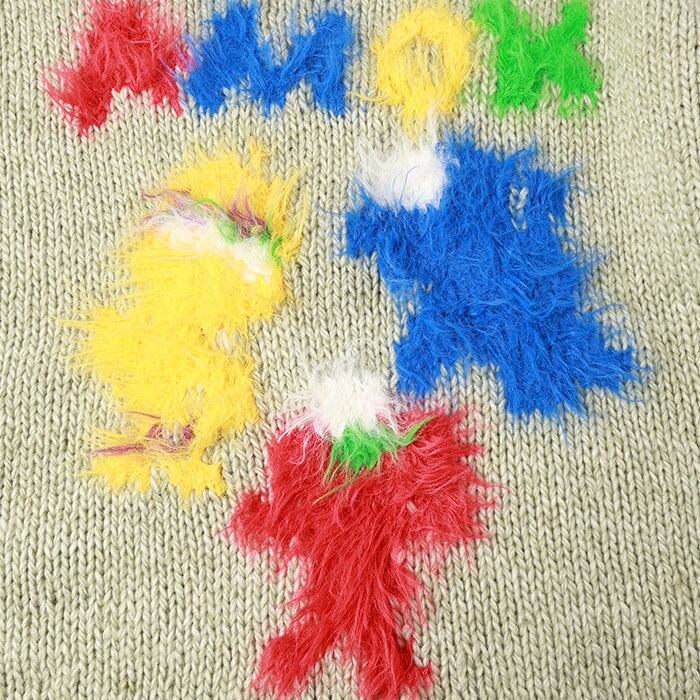 モチーフは3種類のモンスターを表現しており、落書きした様なタッチと表面感のある毛足の長い糸を使用し、ブランドらしいキャッチーなモチーフに仕上げました。