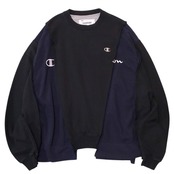 古着、ヴィンテージの2枚の異なったCHAMPSWEATを解体した後、再構築されたドッキングスウェットシャツ。