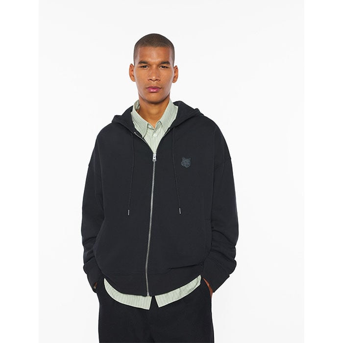 MAISON KITSUNE メゾンキツネ / FOX HEAD ZIPPED OVERSIZE HOODIE (black) [KITSUNE-PM02138KM0340]