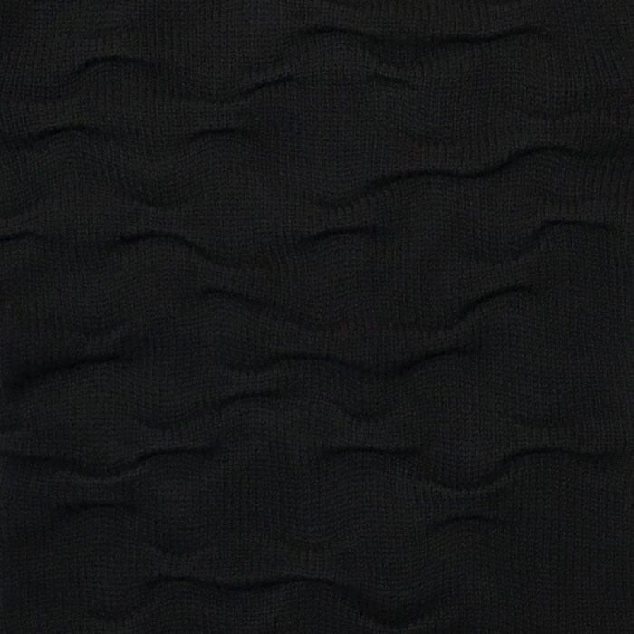 The design expresses the textures of sand, grass, straw, and lead—elements frequently featured in the works of Anselm Kiefer, a leading post-war German artist—through a 3-gauge tuck stitch.