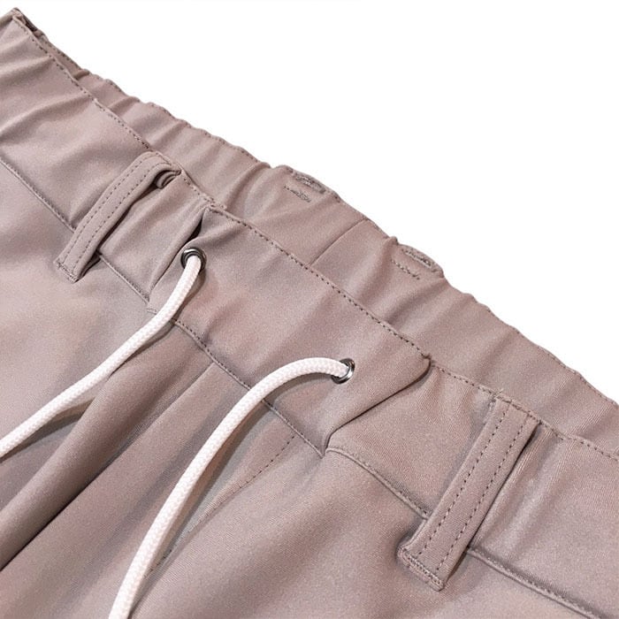 ウエストイージーで裾にスナップを用意したトラックパンツ。