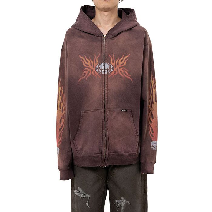 KAMIYA カミヤ / Skull Flame Zip Hoodie (brown) [KAMIYA-G15HD073]