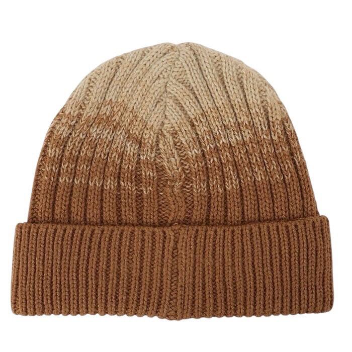 配色がグラデーションになるよう、リブ状に編み上げられたニットキャップとなります。