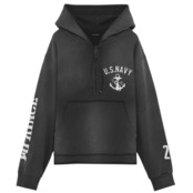 Features a navy-inspired logo print on the front and sleeves.
