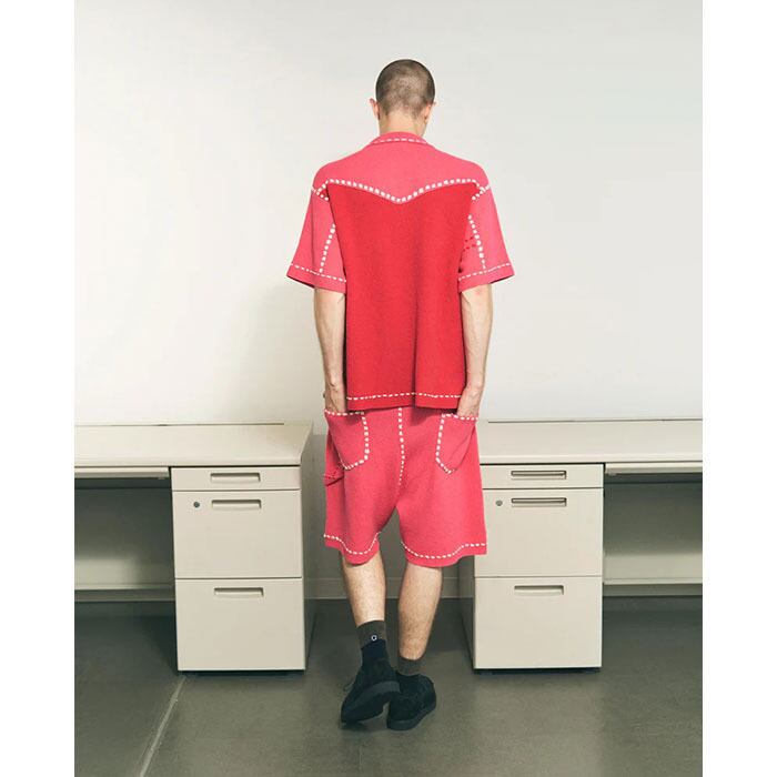 異なるスタイルのステッチワークを施したショーツとセットアップで組み合わせて、夏のユニフォームとしても。