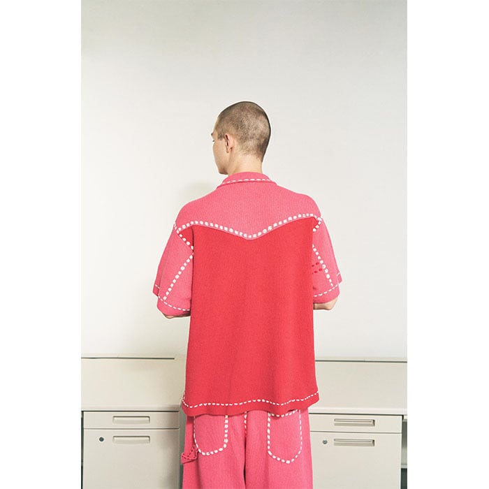 Designed with a crisp feel against bare skin and the knit fabric’s inherent breathability in mind, this piece can be enjoyed in various climates, including as part of layered outfits.