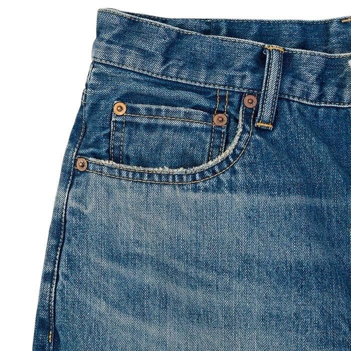 一本一本、職人の手作業により、まるでヴィンテージのようなアタリや色落ちが施されて独自の風合いと個性が生まれ、他のデニムとは一線を画す仕上がりに。
