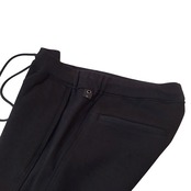 ウエストベルト、サイドの切り替え部分をリブ使いにすることで、ボリュームのある素材ながらすっきりとした着用感が得られる仕様にしている。