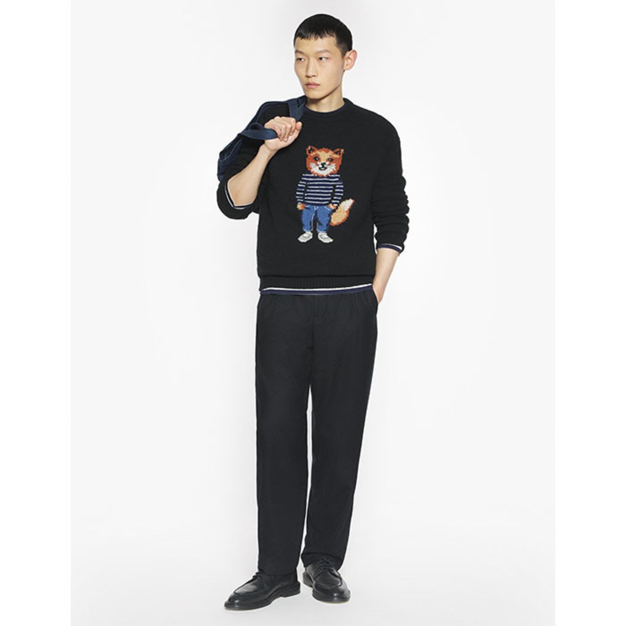 ・Intarsia-knit dressed fox design on chest