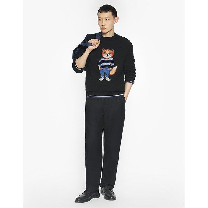 MAISON KITSUNE メゾンキツネ / DRESSED FOX INTARSIA WOOL JUMPER (black) [KITSUNE-PM00806KH0002]