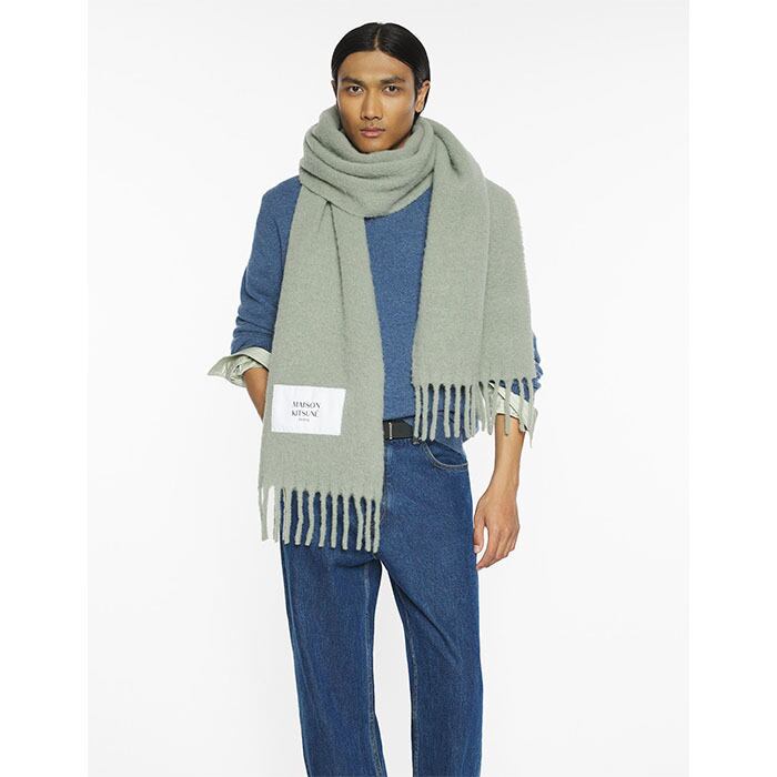 MAISON KITSUNE メゾンキツネ / BABY ALPACA PLAIN SCARF (laurel green) [KITSUNE-LM06206WA0022]