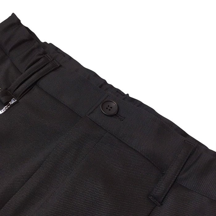 経糸を2本以上引き揃えて織り立てる、カルゼ特有の畝が見えるスラックス。