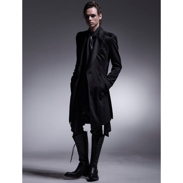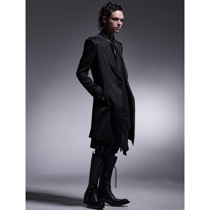 kiryuyrik キリュウキリュウ / Kersey Jersey Epaulet Peacked Long Jacket (black) [kiryuyrik-KU-HJ71-906]