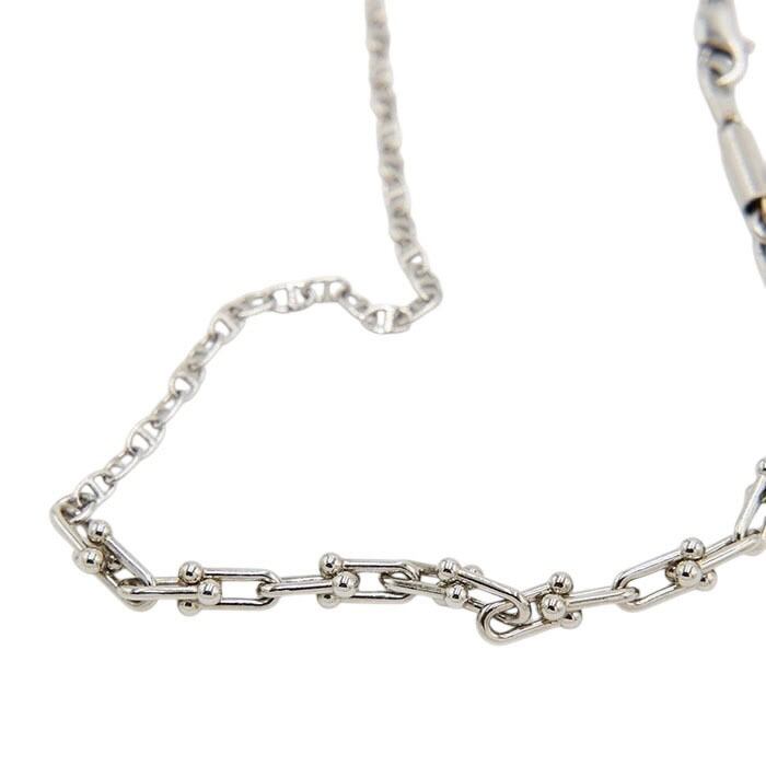 異なるチェーンをミックスさせたネックレス。