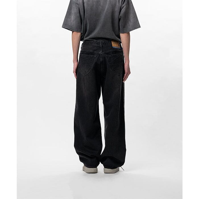 in・stru(men-tal). インストルメンタル / HARD WASHED SELVAGE DENIM BAGGY PANTS (black) [MIHARAYASUHIRO-I16PT083]