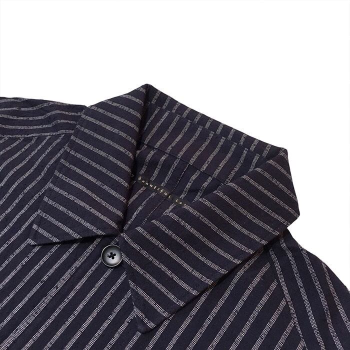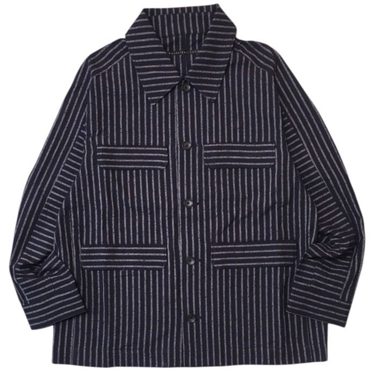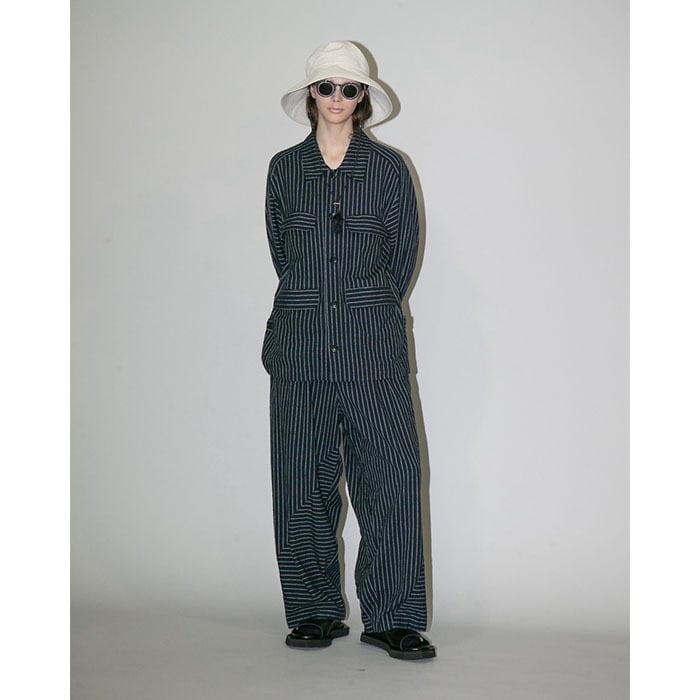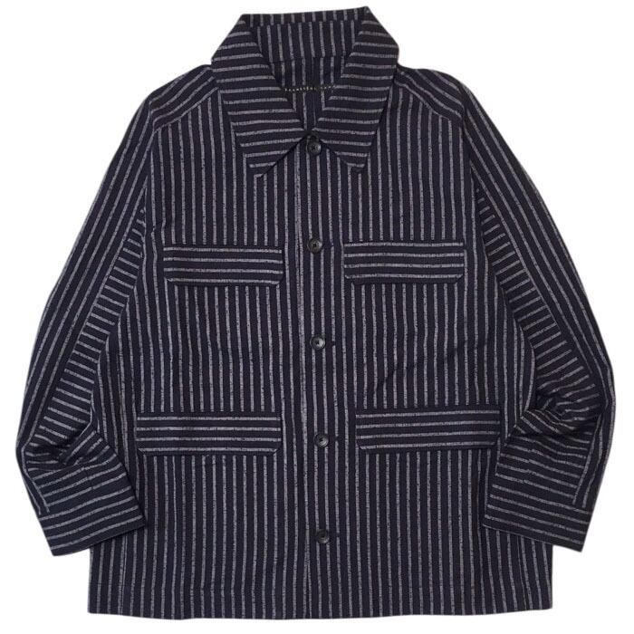 【UNISEX】my beautiful landlet マイビューティフルランドレット / STRIPED CURL YARN COVERALLS (navy) [MBL-WM01-JK2610101]
