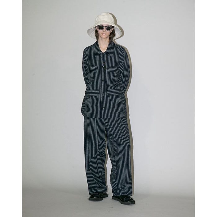 【UNISEX】my beautiful landlet マイビューティフルランドレット / STRIPED CURL YARN TROUSERS (navy) [MBL-WM01-PT2610102]