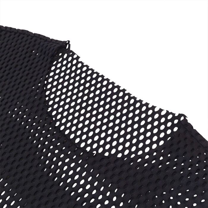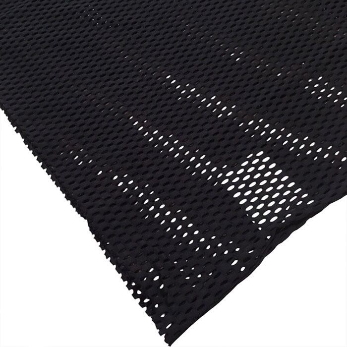 光沢感とハリ感のあるコットンメッシュ素材で、さらっとした肌触りと大きめのメッシュ柄が特徴。