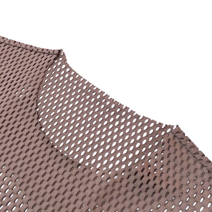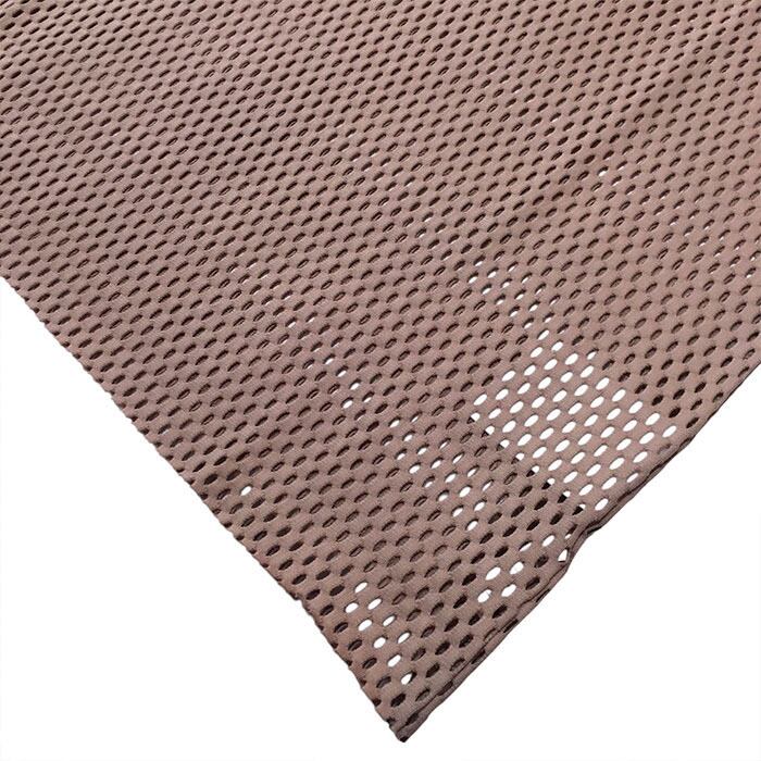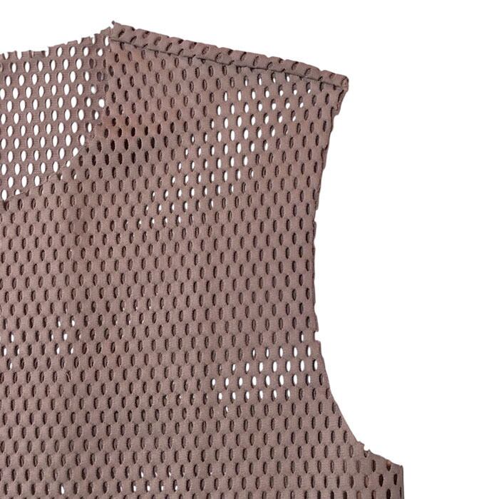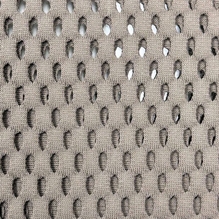 光沢感とハリ感のあるコットンメッシュ素材で、さらっとした肌触りと大きめのメッシュ柄が特徴。