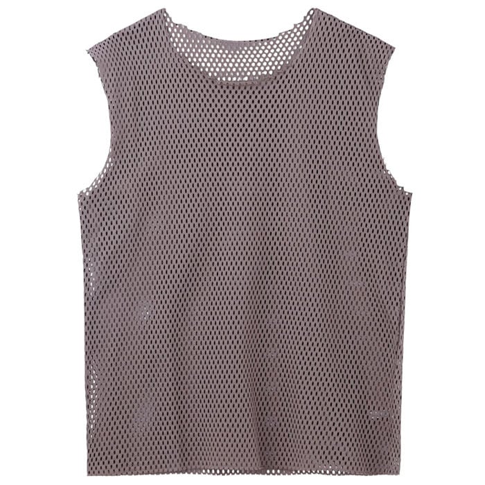 A sleeveless mesh top.