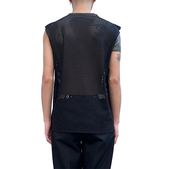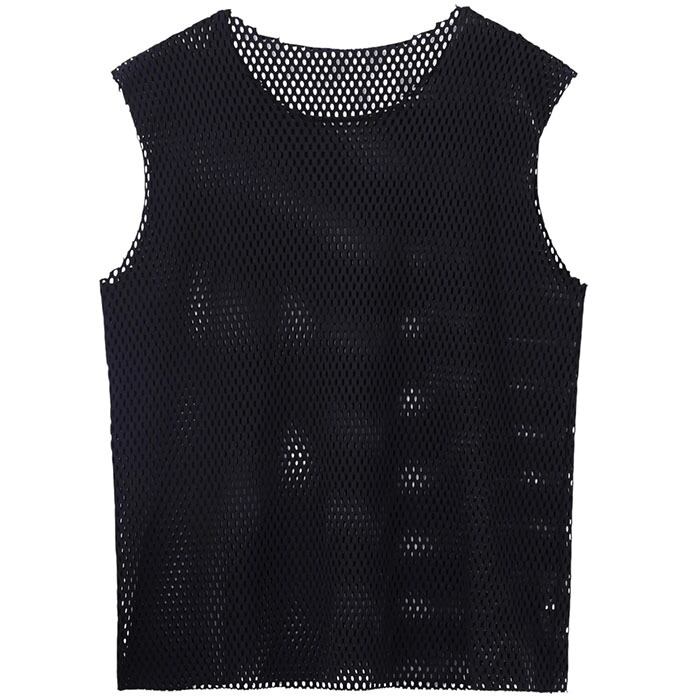 A sleeveless mesh top.