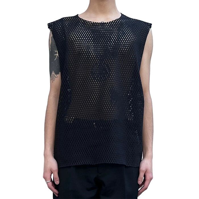 JOHN LAWRENCE SULLIVAN ジョンローレンスサリバン / COTTON MESH SLEEVELESS TOP (black) [JLS-5A011-0926-13]