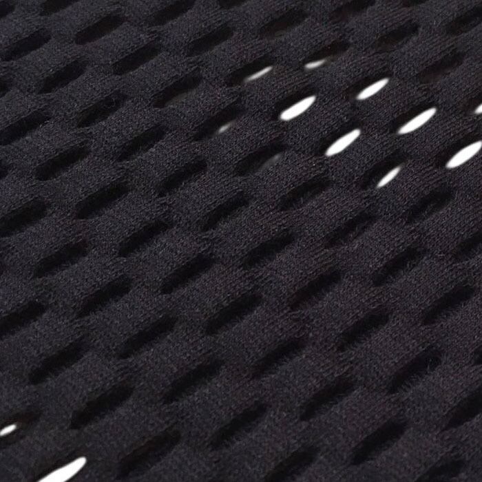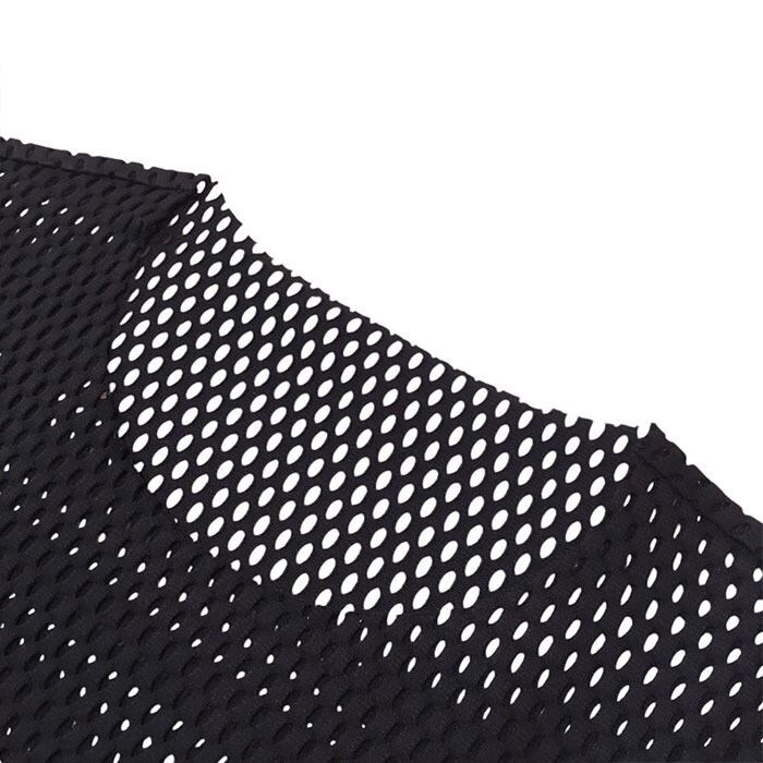 光沢感とハリ感のあるコットンメッシュ素材で、さらっとした肌触りと大きめのメッシュ柄が特徴。