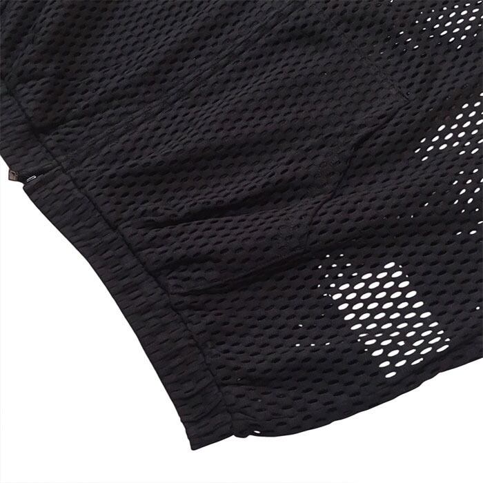 光沢感とハリ感のあるコットンメッシュ素材で、さらっとした肌触りと大きめのメッシュ柄が特徴。
