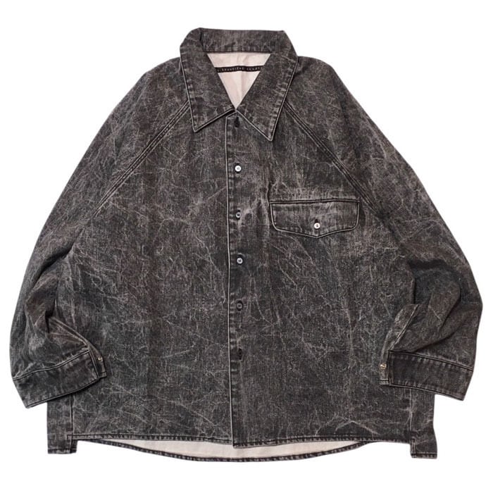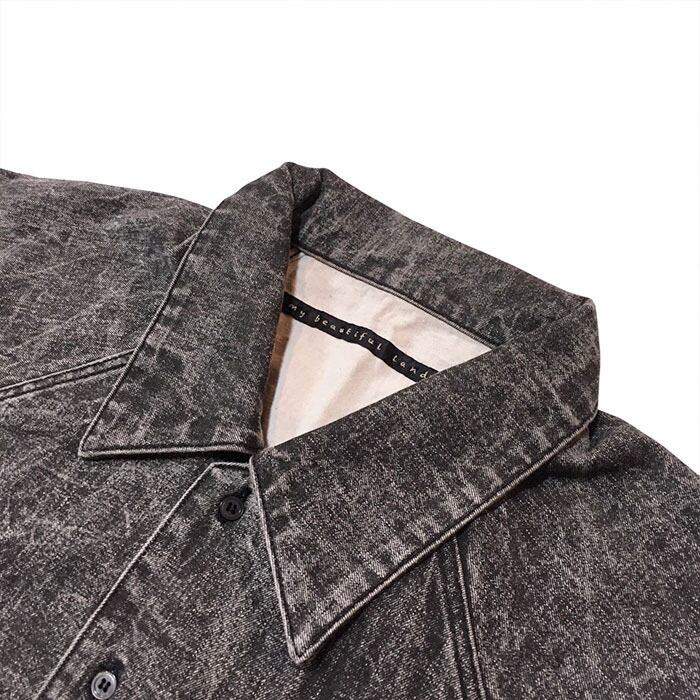 【UNISEX】my beautiful landlet マイビューティフルランドレット / Pigment print washed denim shirt (black) [MBL-WM04-SH2610403-B]