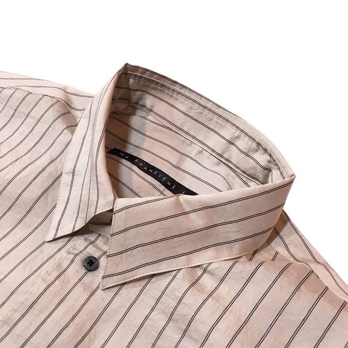 【UNISEX】my beautiful landlet マイビューティフルランドレット / CALVIA Stripe shirt (beige stripe) [MBL-WM09-SH2610902]