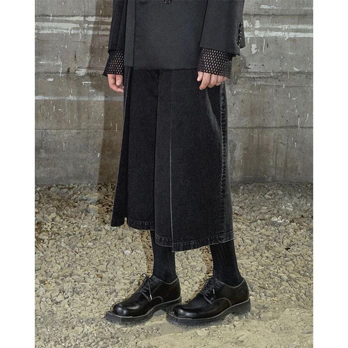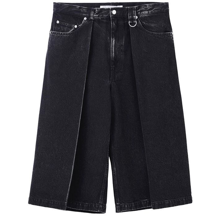 JOHN LAWRENCE SULLIVAN ジョンローレンスサリバン / Washed denim tucked wide shorts (black) [JLS-2A009-0426-20]