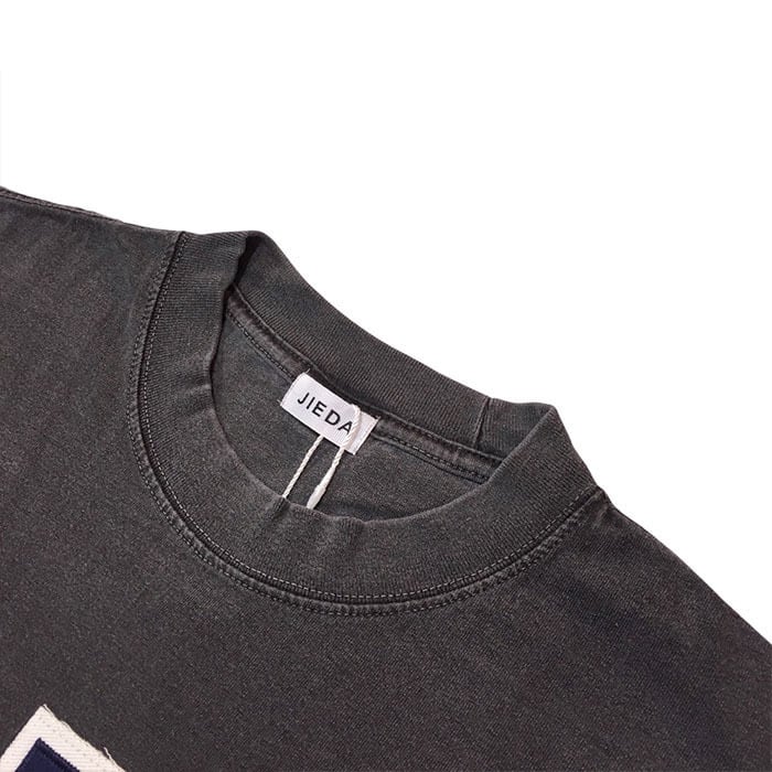 A garment-dyed T-shirt featuring a “JIEDA” patch on the front.