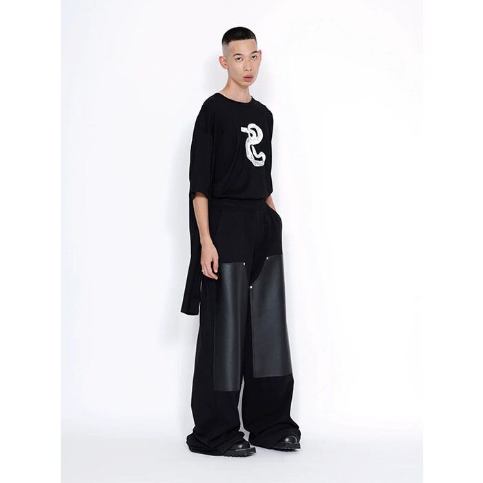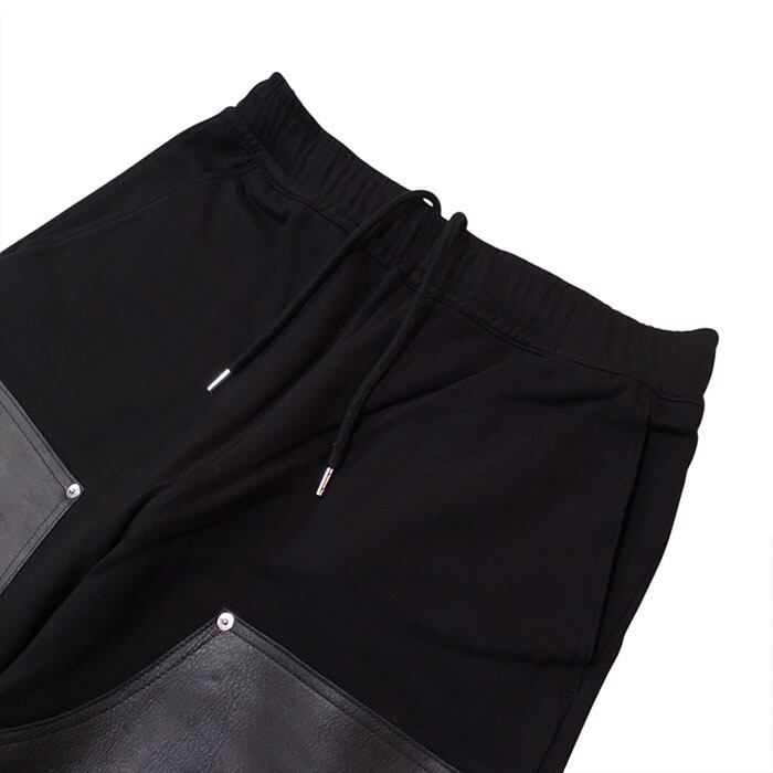 JOHN LAWRENCE SULLIVAN ジョンローレンスサリバン / Sweat Wide Pants with Leather Patch (black) [JLS-05-08]