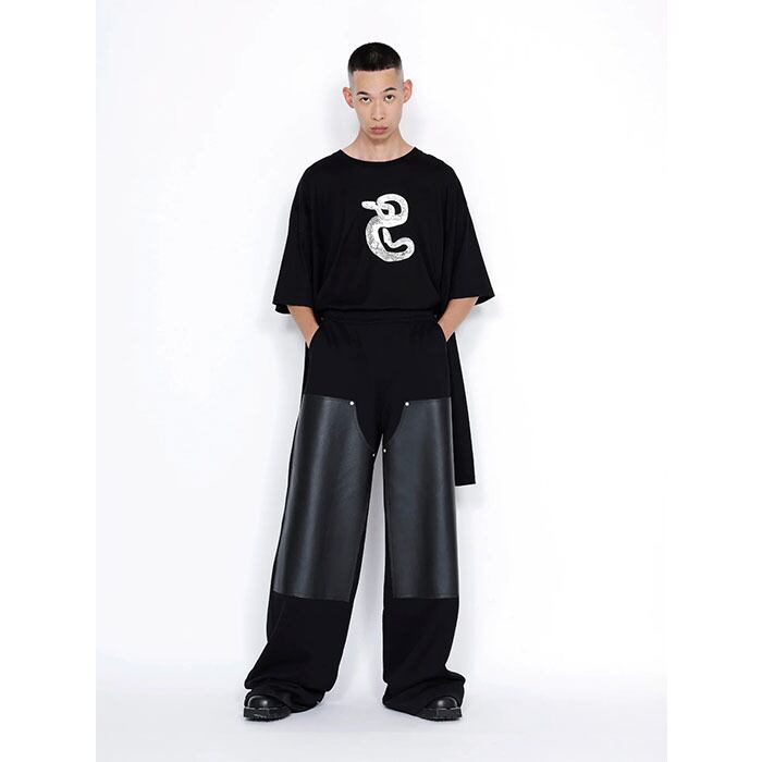 ■Product Name: Sweat Wide Pants with Leather Patch