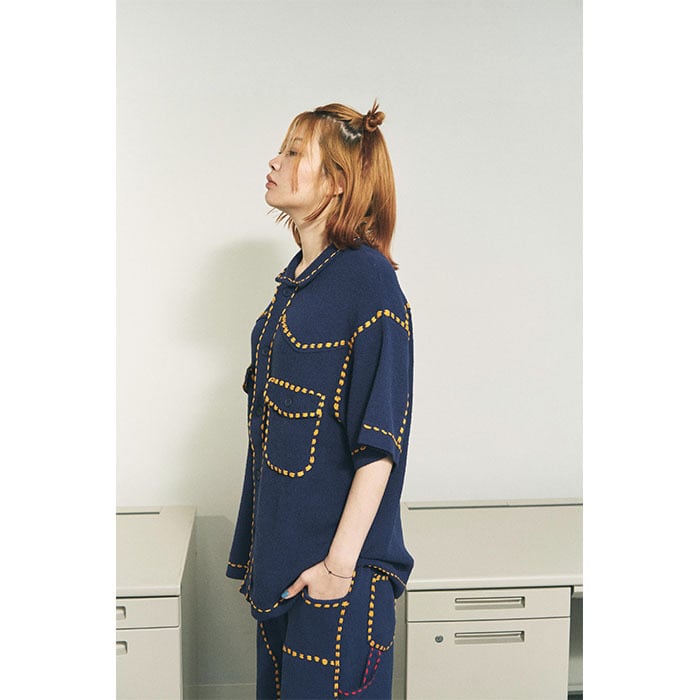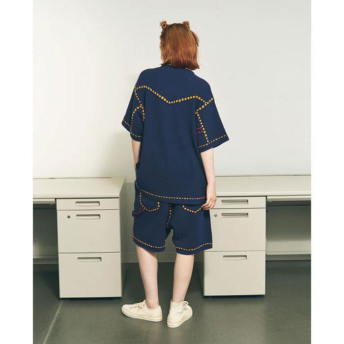 異なるスタイルのステッチワークを施したショーツとセットアップで組み合わせて、夏のユニフォームとしても。