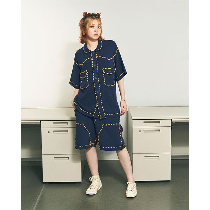 ウエスタン風の同素材シャツとの組み合わせで、夏のユニフォームとしても。