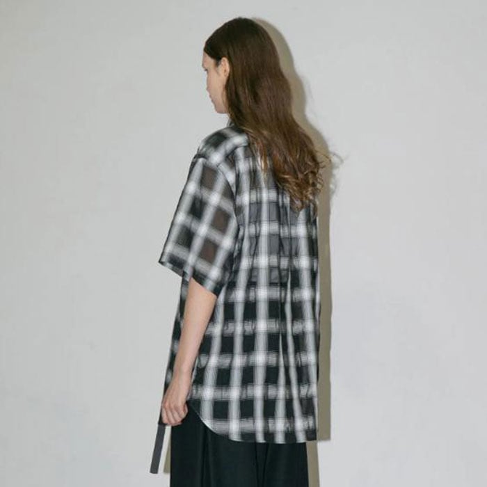 The sheer material gives the check pattern a translucent quality, creating a unique and charming look. Furthermore, the addition of stretch yarn adds texture to the fabric’s surface, resulting in a check-patterned shirt unlike any other.