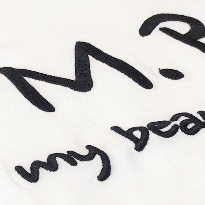 滑らかな微光沢のコットン生地に「M.B.L my beautiful landlet」とブランドロゴが刺繍されたTシャツ。