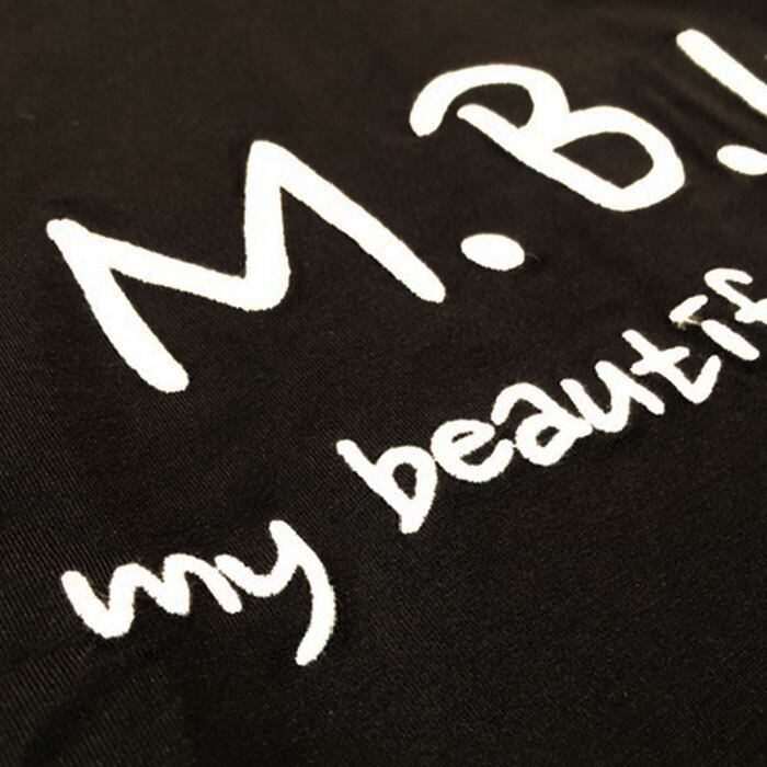 A T-shirt featuring the brand logo “M.B.L my beautiful landlet” embroidered on smooth, slightly lustrous cotton fabric.